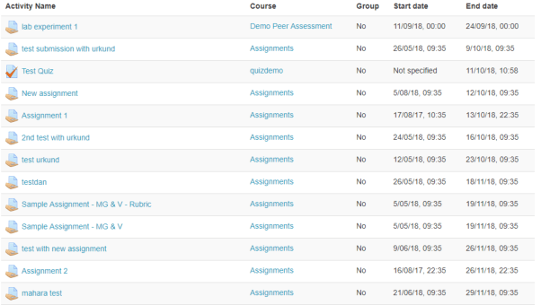A student studying in first year science studies three modules Chemistry 101, Physics 101 and Biology 101. The plugin that we have developed first adds the tag “science1” to each of the modules. Then any teacher on the aforementioned modules can generate the report through the reports feature on the administration block on their course page. The report pulls all of the assignments in each of the modules and presents them in several formats.